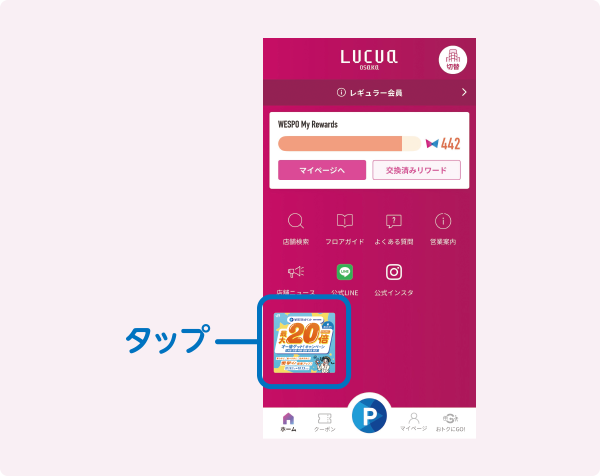 アプリホーム画面のキャンペーンバナーから