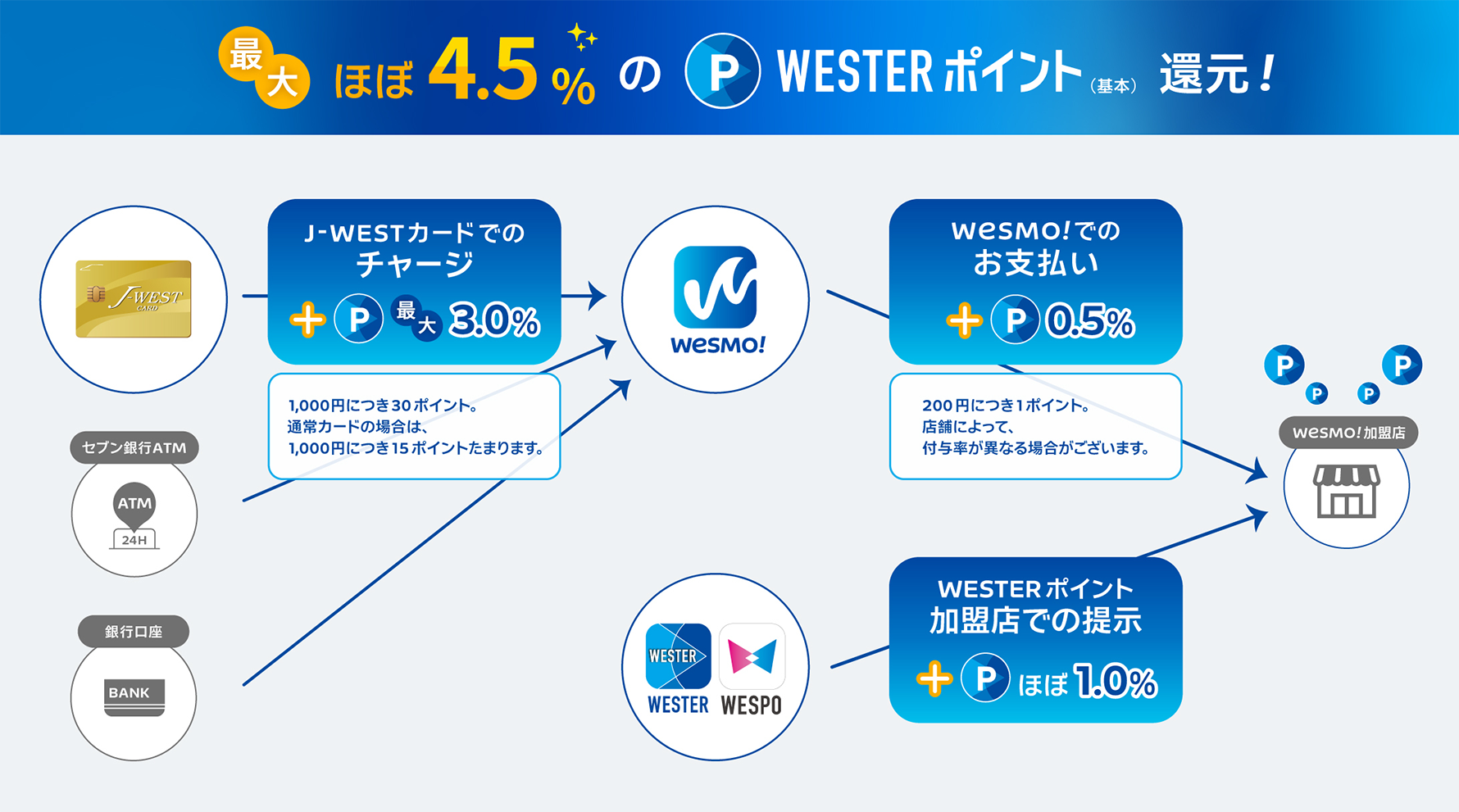 WESMO!は全国のコンビニやスーパー、飲食店など、さまざまなお店でご利用いただけます。
