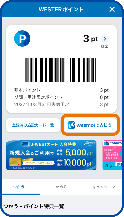 WESTERポイント獲得から支払いまでがスムーズに!