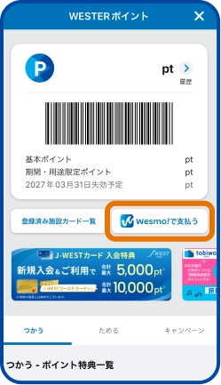 - ※e5489でのWESMO!決済ではWESTERポイントは付与されません。