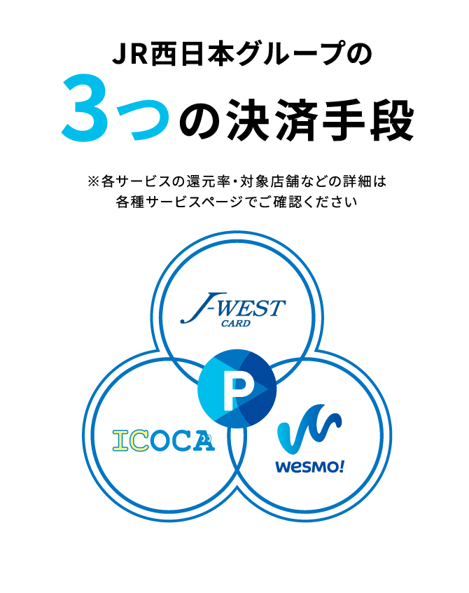 - ※ICOCA(SMART ICOCA、モバイルICOCA/Apple PayのICOCAを除く)は、WESTERポイント(チャージ専用)サービスの利用登録が必要です